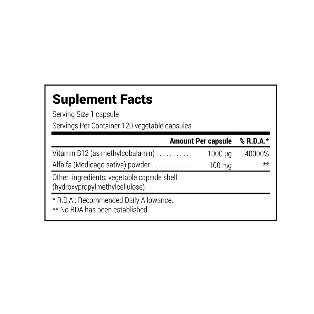Supliment alimentar cu forma activă a vitaminei B12 sub formă de metilcobalamină. Metilcobalamina are o absorbție superioară și este necesară organismului pentru reciclarea homocisteinei.